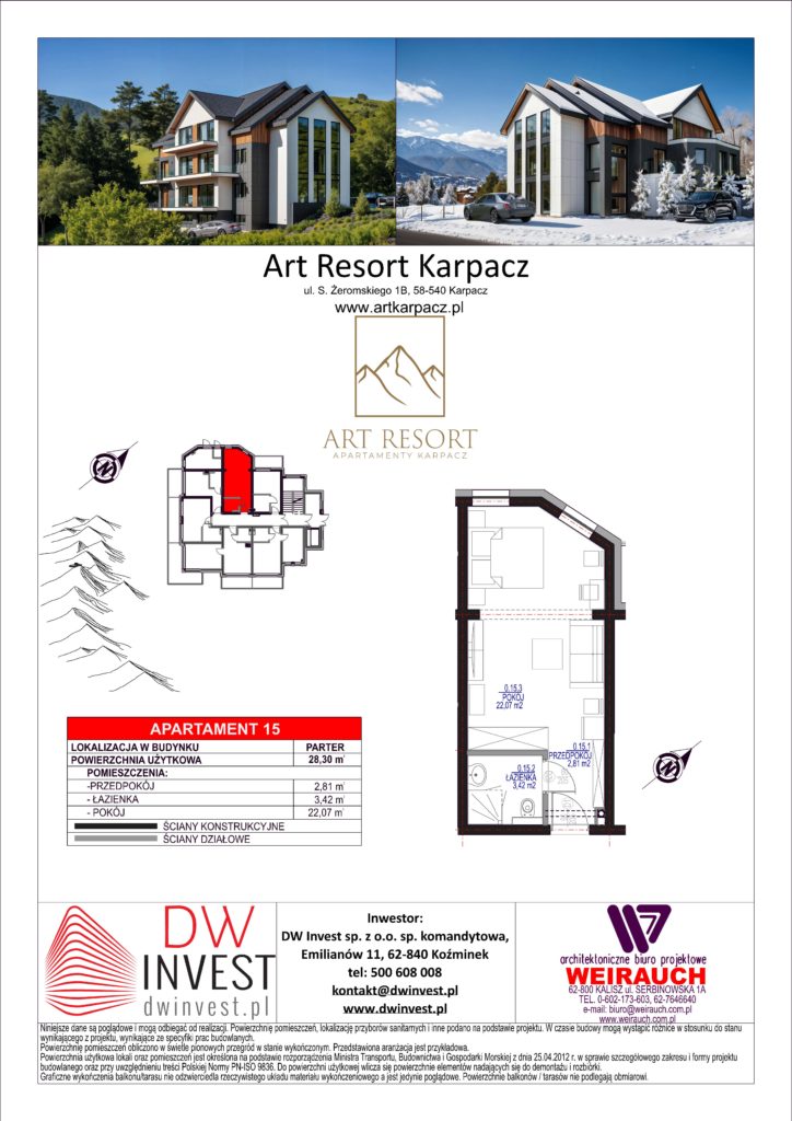 Poniższe zdjęcia przedstawiają przykładowe wizualizacje i standard wykończenia Art Resort Karpacz. Finalny układ, metraż i rozmieszczenie elementów wyposażenia apartamentu mogą się różnić w zależności od wybranego numeru lokalu.